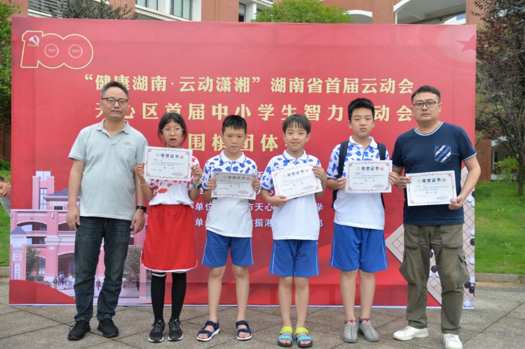 棋逢对手斗智勇,将遇良才争上游。2021年7月3日,天心区首届中小学生智力运动会围棋团体赛在龙湾小学隆重开幕,区内18所中小学校参与了本次比赛。我校百舸围棋代表队由黄梓泰5段、任思行4段、朱天翊4段、熊曼清4段组成,他们在比赛中沉着、冷静,发挥稳定,下出了一局又一局的好棋,以20场全胜的骄人战绩一举夺冠。