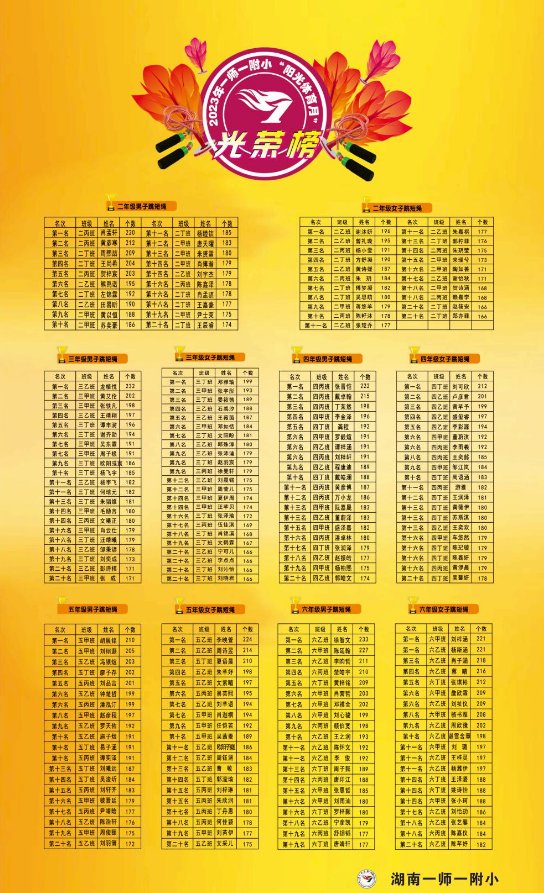 以体育德,以体育心,以体育智,以体育美。体育的价值不仅仅是强健体魄,更在于全方位塑造少年儿童进取的精神和健全的人格。阳光体育运动是我校一直坚持的传统体育活动,我们秉承老校长毛泽东“文明其精神,野蛮其体魄”的教育思想,本着全员参与、家校联动的原则,引领附小少年爱上体育运动,提高体育技能,培养体育精神,让良好的身体素质成为附小少年不断向上攀登、超越自我的基石。