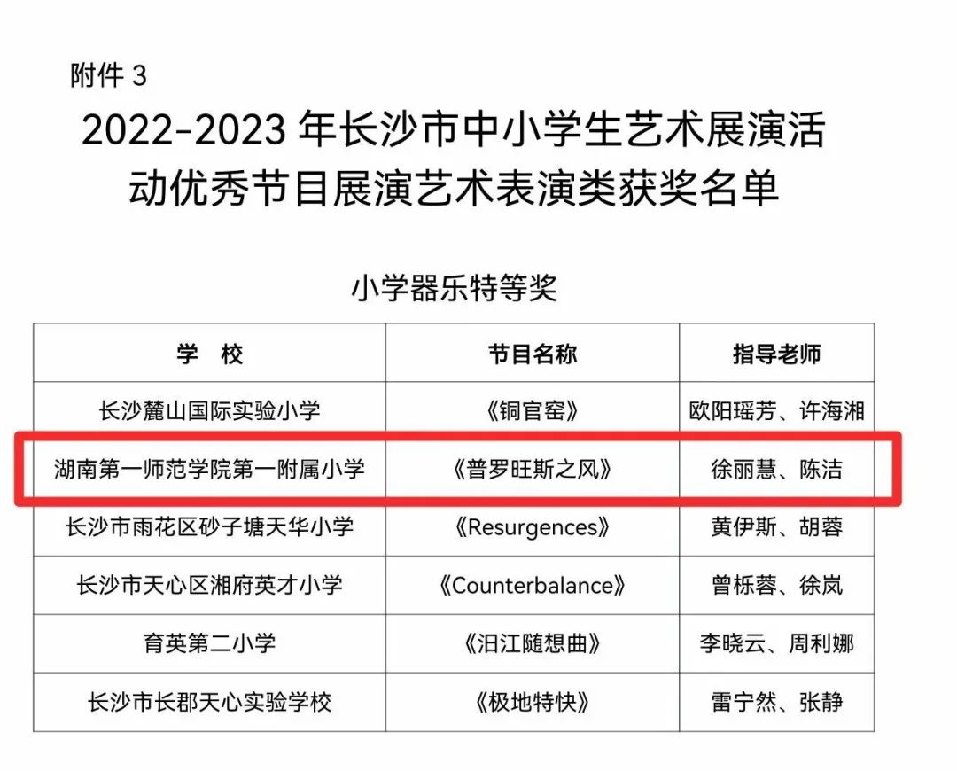 热烈祝贺我校百舸管乐团在2022-2023年长沙市中小学生艺术展演活动中,荣获小学器乐组特等奖!成功晋级省赛,进军国赛!