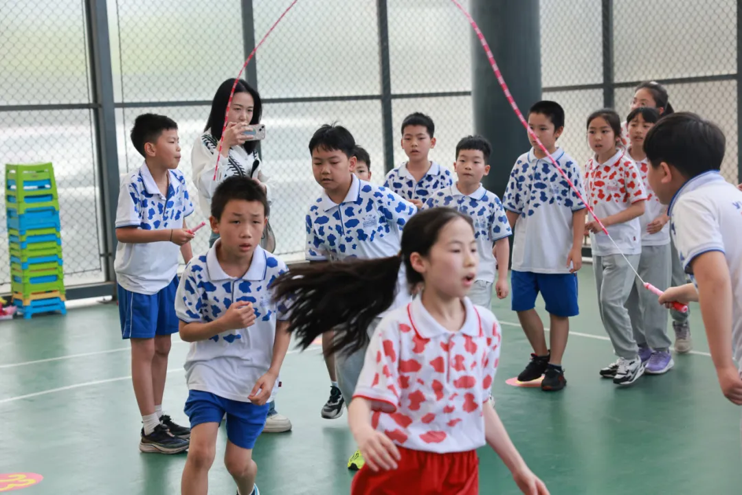 一、二年级的亲子跳绳比赛为体育月增添了温馨与欢乐的色彩。家长与孩子携手参与,共同挥动跳绳,默契配合。孩子们稚嫩的笑脸与家长们鼓励的目光交织成最美的画面,每一次跳跃都充满了亲情的温暖与运动的快乐。这场亲子跳绳不仅锻炼了身体,更增进了家校之间的情感,让运动的种子在孩子们心中生根发芽。