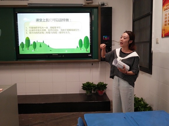 三位年轻老师的分享之后,是余运群副校长从吕敏教授的讲座中沉淀的感想,以《老师,你可知感觉统合失调》为题做的分享。感觉统合失调是指外部的感觉刺激信号无法在儿童的大脑神经系统进行有效的组合,而使机体不能和谐地运作,久而久之形成各种障碍,最终影响身心健康。尤其是到了学龄期,这部分孩子在学习能力和性格上会出现这样那样的障碍,学习能力下降,语言表达不畅,心理成熟晚,情感脆弱,自控能力差,缺乏自信,不会和别人交往,人际关系差等等。在面对这些孩子以及发现孩子出现这样的情况的时候,老师和家长们应当给予科学的看待、积极的干预与足够的宽容。不放弃这些孩子,不伤害这些孩子,不误解这些孩子,真正理解、陪伴和帮助他们成长。