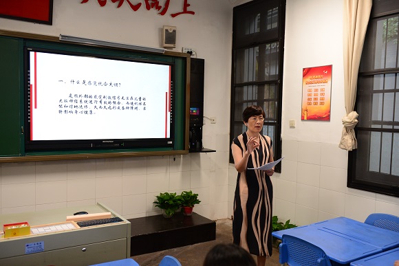 在汇报分享环节,谢洁老师、周赛老师、衣莉媛老师与余运群副校长依次就自己在培训中触动最深的内容与观点同老师们进行了分享。谢洁老师以《读懂这些落入“地球的星星”——了解有读写障碍的孩子》为题,分享了吕敏教授《儿童学习能力提升策略----个性化教育模式探讨》讲座中关于读写障碍的内容。从读写障碍的主要影响、表现形式、应对策略等方面带领老师们以另一种视角看待教室里的学生们。周赛老师分享的是方张松教授在《基于核心素养的课程教学评价改革》中的内容,同老师们一起就阅读、观影、旅行、游戏、师生关系、严厉教育以及创新创造能力与分析综合能力的培养等方面进行了交流。衣莉媛老师则从美术老师的专业视角出发,从艺术创作的特点、鉴赏艺术作品的方法以及培养审美的必要性等角度分享了王一飞教授的《美学与艺术鉴赏》讲座。