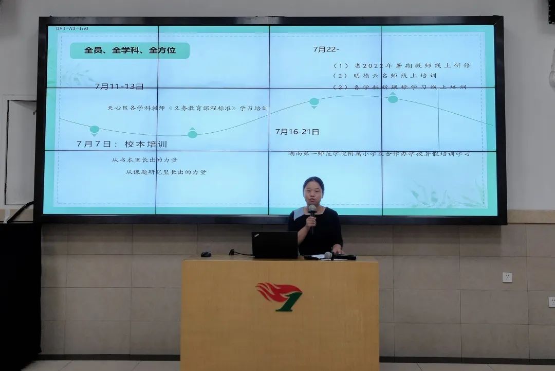 夏天,万物生长正当季,教师学习正当时。教研室主任戴娜以《储能蓄力•研精覃思》为题总结了暑假教师培训工作。新课程改革背景下,为加强教师新课程理念建设,全面提升教师专业化水平,学校组织了一次全员、全学科、全方位、全时空的教师研训:从线上云学习到线下集中培训,从家里的书桌到异地的教室,从年轻教师到骨干专家……一场场培训,一次次遇见,我们透过不同的视角“走进”了世界各地别具特色的学校,也看到了身边的学校、教育同行者的勤思笃定。