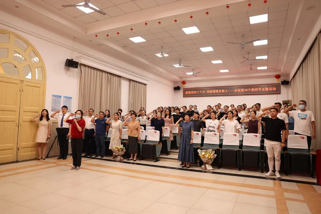 为隆重迎接党的二十大胜利召开,在全国第38个教师节到来之际,我校组织开展了“迎接党的二十大 培根铸魂育新人”教师节主题庆祝活动。