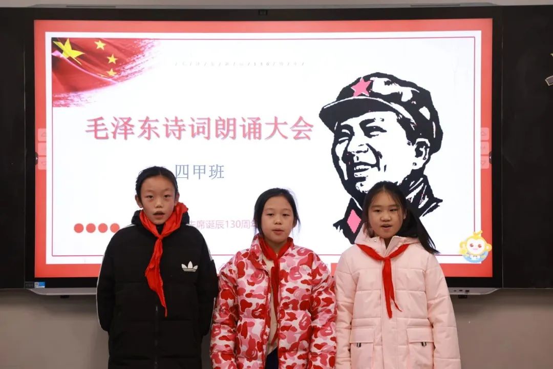 “看万山红遍,层林尽染;漫江碧透,百舸争流。”中年级同学声情并茂地朗诵着毛主席诗词,感悟着老校长的初心与情怀。