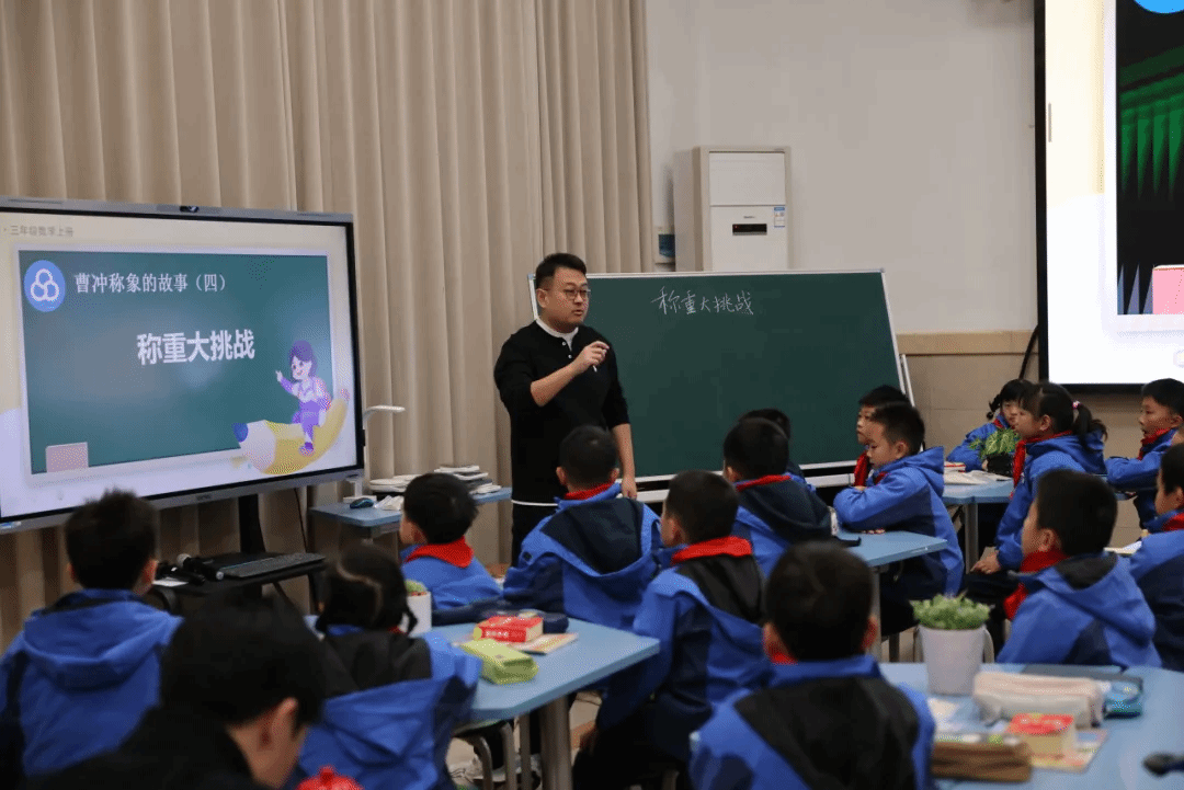 张一帆老师带领三丁班的孩子们开展了一场别开生面的《称重大挑战》。课堂伊始,张老师以劳模张秉贵爷爷的事迹巧妙导入,实现情境育人与知识铺垫的有机融合,为学生筑牢量感基础。以 “无秤称苹果” 为核心任务,驱动学生主动探究转化策略。通过明确分工合作,形成 “实践—验证—反思”的完整学习闭环。整堂课紧扣 “素养导向,实践育人”理念,既突破了教学难点,又真正培养了孩子们的综合实践能力。