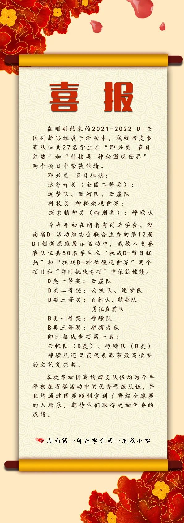 2021年9月到2022年6月,历时九个多月从学校选拔、省赛到国赛的DI之旅,附小学子们尽情展示了自己的奇思妙想,凸显了创意和个性,充分体验着DI带来的快乐,全体DI队员凭借着团队的力量一路走来,在相处中收获了友谊、欢乐、激情和感动,在创作中提升了能力、磨炼了意志、塑造了品质。