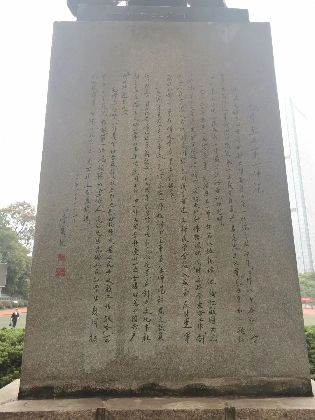 麻白色石块的铜像基座,正面镌刻着时任中共中央总书记江泽民亲笔题写的“青年毛泽东”5个金色大字,基座后面则镌刻着一篇题为《毛泽东在第一师范》的铭文,言简意赅地概述了我们的老校长毛爷爷在一师八年间学习和革命的经历,铭文末尾落笔署名李维汉。为什么李维汉要为学校的这尊铜像撰写铭文?他与第一师范、与毛泽东又有着怎样的渊源呢?