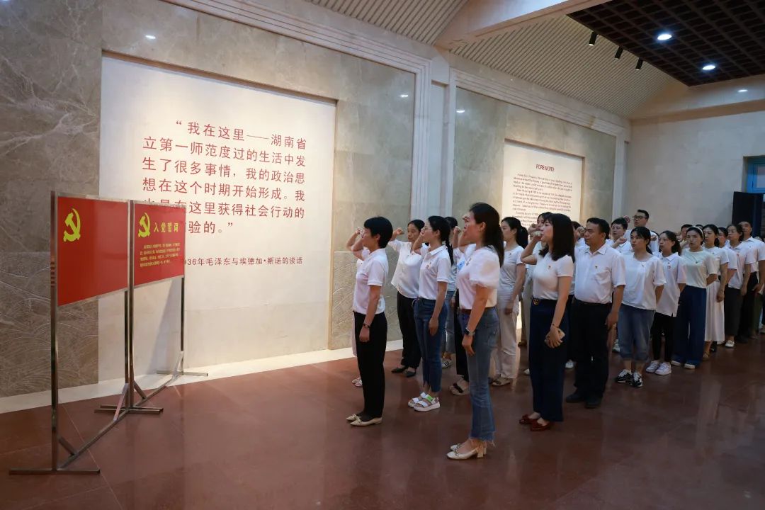 在讲解员的引导下,全体党员教师走进了毛泽东与第一师范纪念馆展厅,从一幅幅历史影像、一本本历史资料中,了解青年毛泽东在此求学、执教以及从事早期革命活动的情况,共同追忆毛泽东同志青年求学生活和革命活动,重温一代伟人的信仰之路,深刻体悟老一辈共产党人深植于心的人民情怀、家国情怀。