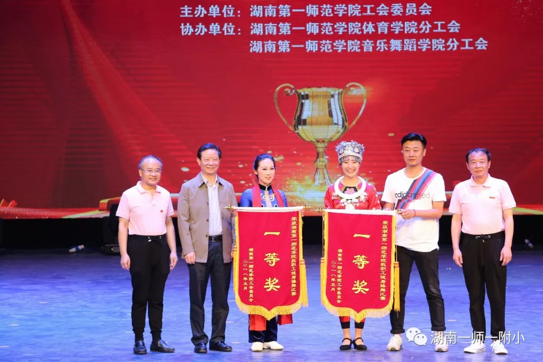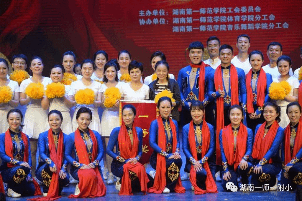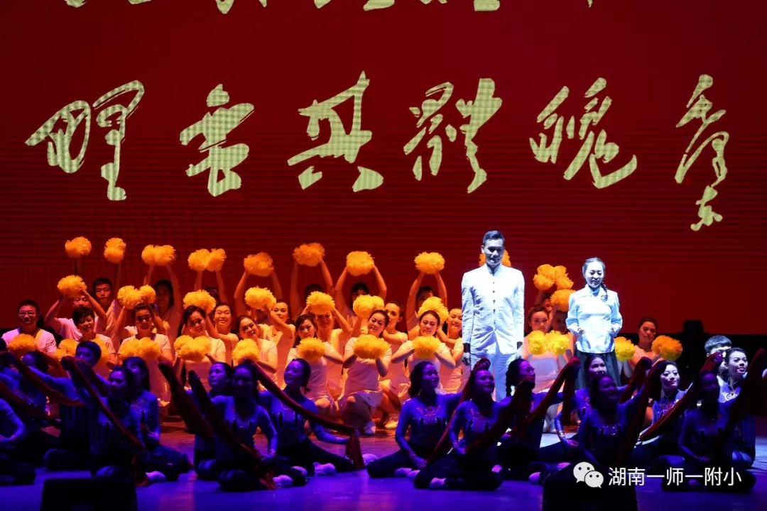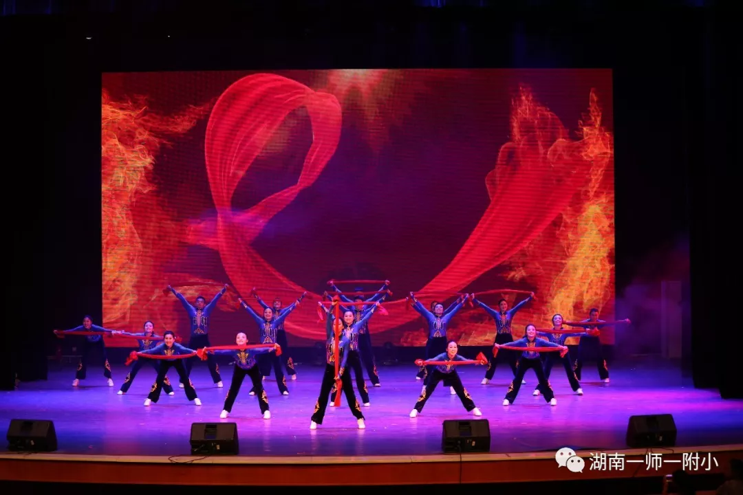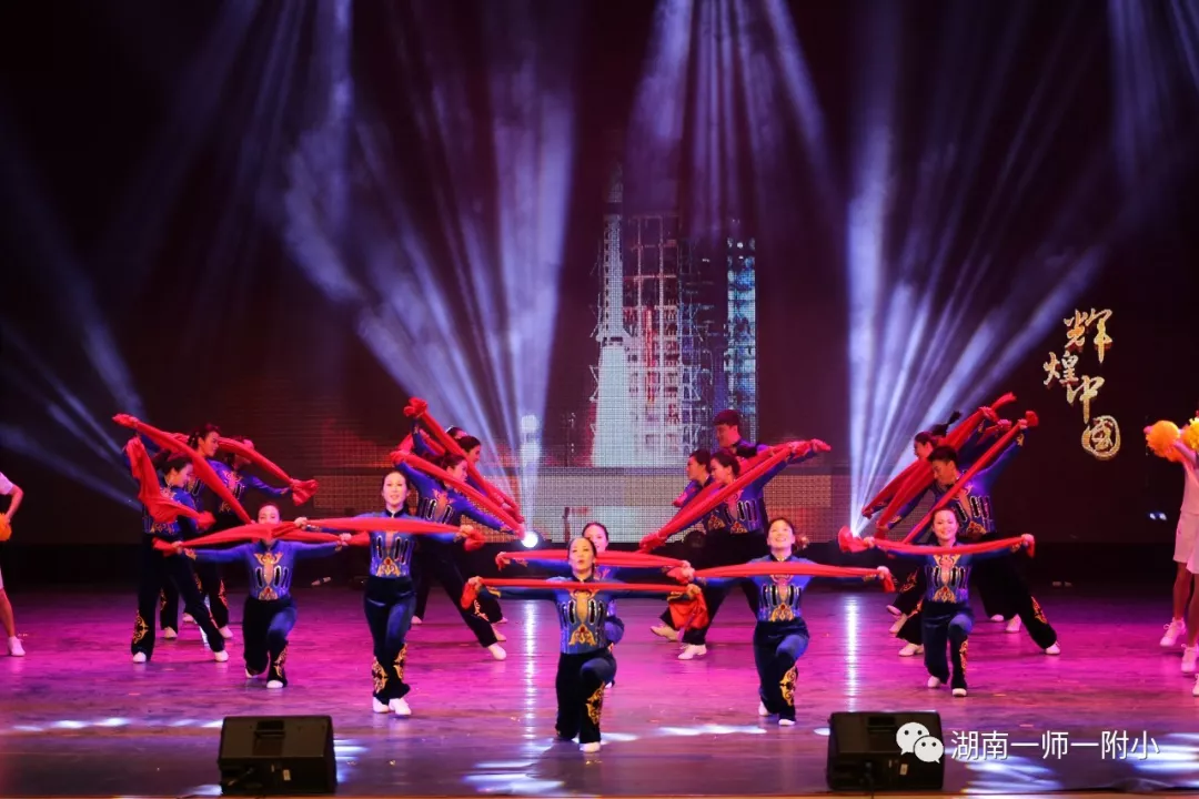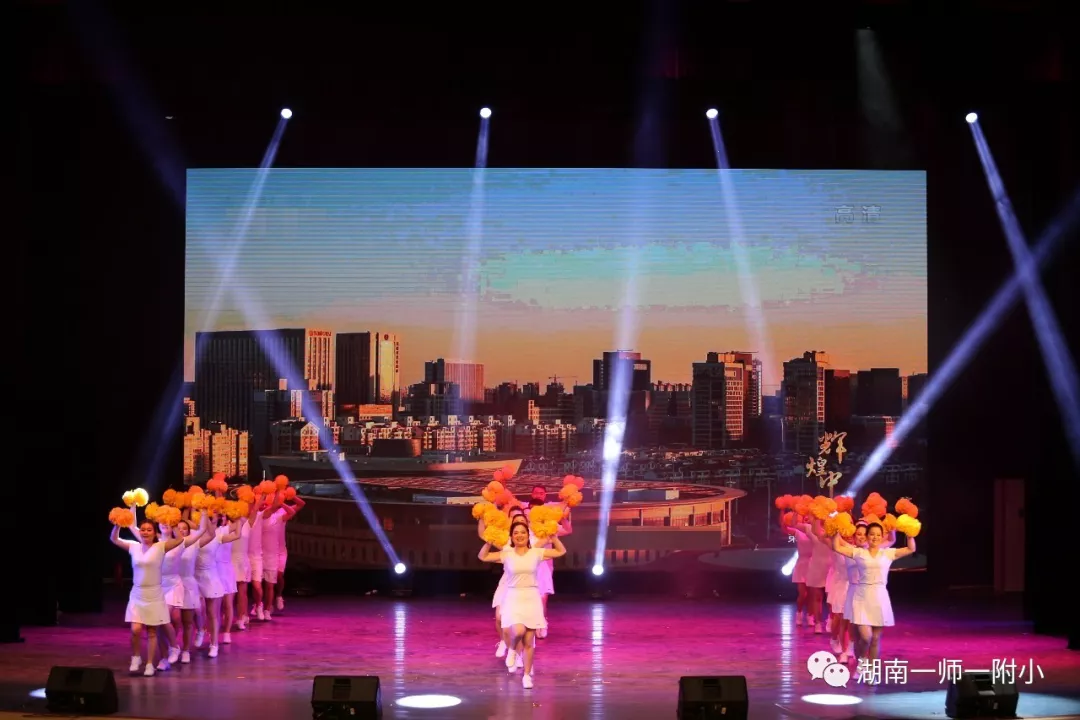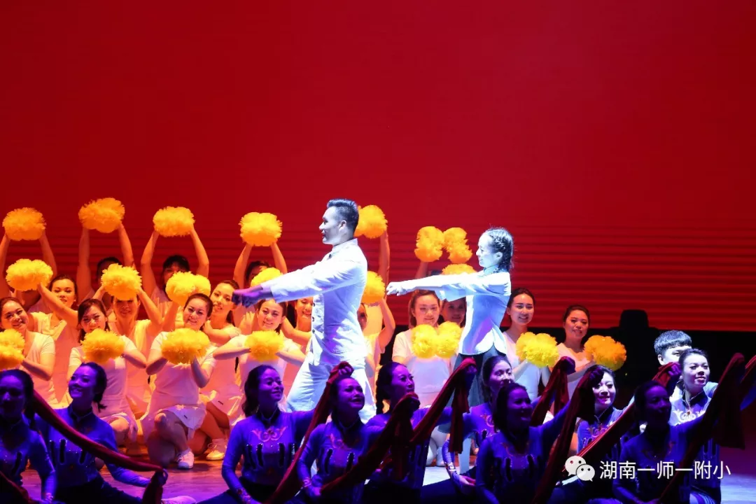 5月3日晚,一附小教师健身操表演队作为最后一支参赛队伍惊艳亮相。一开场,激扬欢快的动感音乐中,一根根火红的绸带随着老师们热舞飞扬。忽地,灯光渐暗、音乐渐缓,方芳校长和胡飞华老师身着素衣走至舞台中央,生动还原着主席与开慧当年在一师校园习操锻炼的情景。风华正茂,依稀可见同学少年。身后巨大的电子屏幕上,“文明其精神,野蛮其体魄”十个大字熠熠生辉。接着镜头一转,手持鲜黄啦啦球的老师们伴着《赞赞新时代》的旋律热情登场,欢快舞动。大屏幕上,新时代的美丽一师如画卷般徐徐展开。校园里,附小孩子们运动时的矫健身姿和灿烂笑脸与舞台上的精彩表演交相辉映。紧接着,习近平等党和国家领导人以及祖国新时代巨大发展成果的画面一一展现在眼前。一张张令世界瞩目的“中国面孔”和闪亮的“中国名片”无不令在场的观众们倍感自豪!