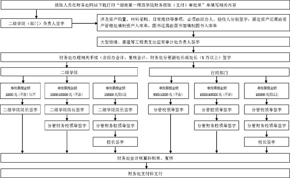 行政部门单张票据金额在5000-10000 (不含)元的,报 分管校领导审签;单张票据金额在10000-100000 (不含)元 的,还需分管财务工作的校领导审签;单张票据金额在 100000元以上的,报校长审批。