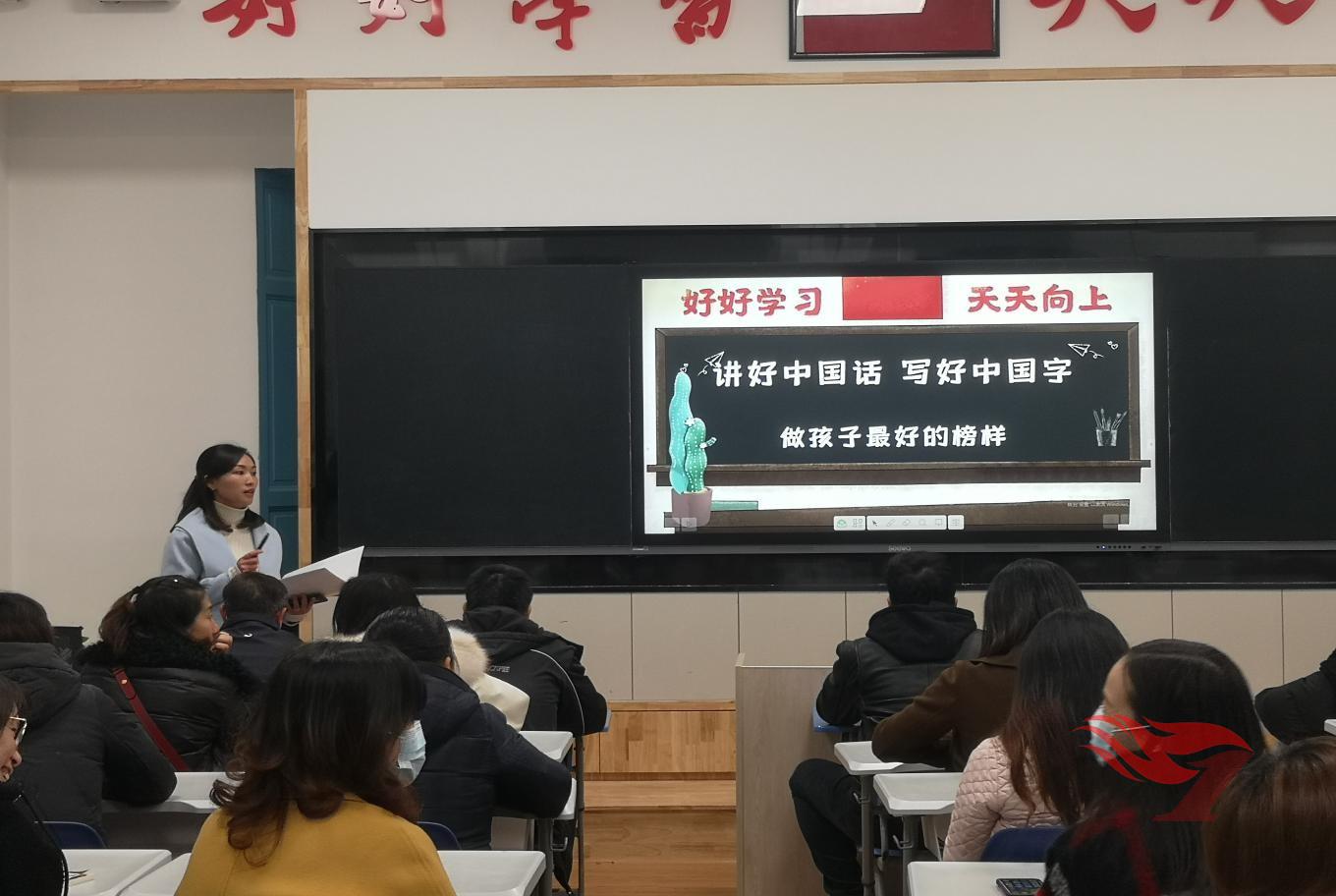 2019年11月19日傍晚,第一师范学院第一附属小学召开家长会,意在向家长推广普通话,与孩子共同成长,做孩子们最好的榜样。