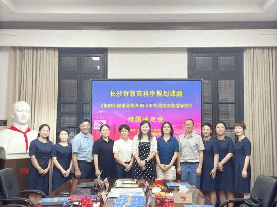 2025年6月25日,长沙市教育科学 “十四五” 规划课题《指向阅读素养提升的小学英语绘本教学研究》结题鉴定会在我校会议室举行。长沙市教科院理论研究员蔡星、天心区教育科学研究中心书记余战勇、湘江新区教师发展中心理论研究员谢福胜、长沙县教育科研中心理论研究员王丹组成的专家组,与我校领导及英语组全体教师齐聚一堂,共同见证了这一凝聚十年探索成果的重要时刻。