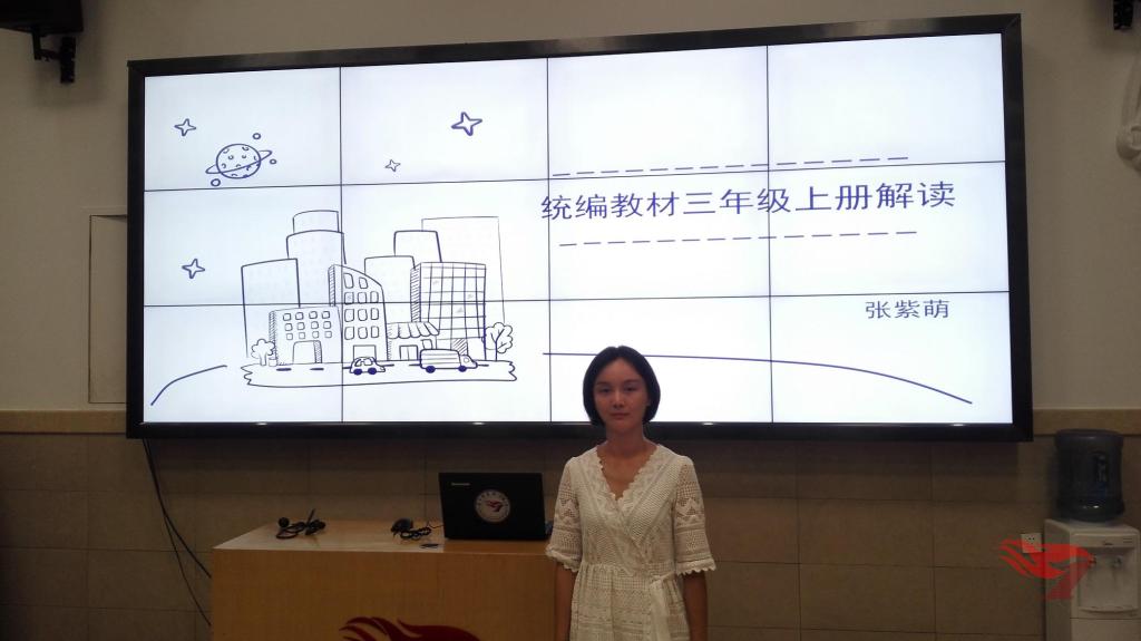 活动最后,张紫萌老师对统编教材三年级上册进行了详细的解读。张老师全面介绍了统编三年级上册教材的整体框架,细致地梳理了“新增点”“调整处”,指出教材操作性、实用性更强。针对富有新意的单元导读页、文言文、阅读策略单元,张老师逐一提出了合理化的教学建议,强调教学时要注意读懂单元导读页,落实核心语文要素;把我文言文教学尺度,实现语言精神共长;学习运用阅读策略,有效提升阅读能力。张老师的解读帮助老师们进一步了解了统编小学语文教材的特点、内容,为今后的教学实践起到了很好的启发作用。