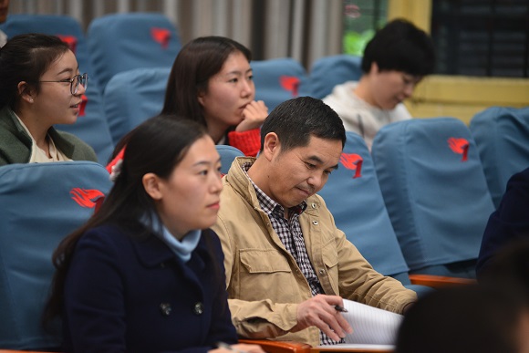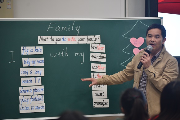 接下来,刘明东教授对课进行了点评,称赞这是“三有课堂”,即心中有目标,眼中有学生,手中有法宝。刘明东教授从教学目标、教学策略、情感渗透等多维度给予这堂英语课高度评价,同时也提出建议。评课之后,刘教授还给我们带来了《中国英语能力等级量表视阈下的小学英语教学》的专题讲座,并就《中国英语能力等级量表》中的第一、二级,即小学阶段英语学习者和使用者的能力量表做了仔细全面的解读。他强调:在新的形式下,小学英语教学需要进行新的转型,其关键就是“重能力”,努力发展学生听、说、读、写综合运用的能力。要做到这一点,需要充分发展小学生作为英语学习的主体的主观能动性,引导他们进行有效的自主学习、合作学习、探究学习,循序渐进,一步一个脚印。这样一来,小学英语教学就一定能回归到教育的本质,实现人才早期培养的初心。