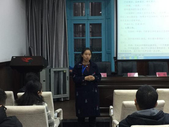 腿伤未愈的余运群副校长一直在默默地听着,时而点头,时而微笑。她说,当她接手指导这样一个庞大而重要的团队,感到压力巨大,同时看到每一个生机勃勃的名字,又充满信心。她相信,我们每个人都能生长成为我们所希望的那个样子,我们每天忙碌的工作、充实的生活都在收获进步和成长。针对学校的工作安排,她建议大家在多读书的同时,要多思考,多动笔,把看到的、想到的及时写下来,有目标,有计划地去积累和沉淀。“凡事预则立”,相信有了明晰的规划,青年团队的教师们定会在新的学期再续精彩!