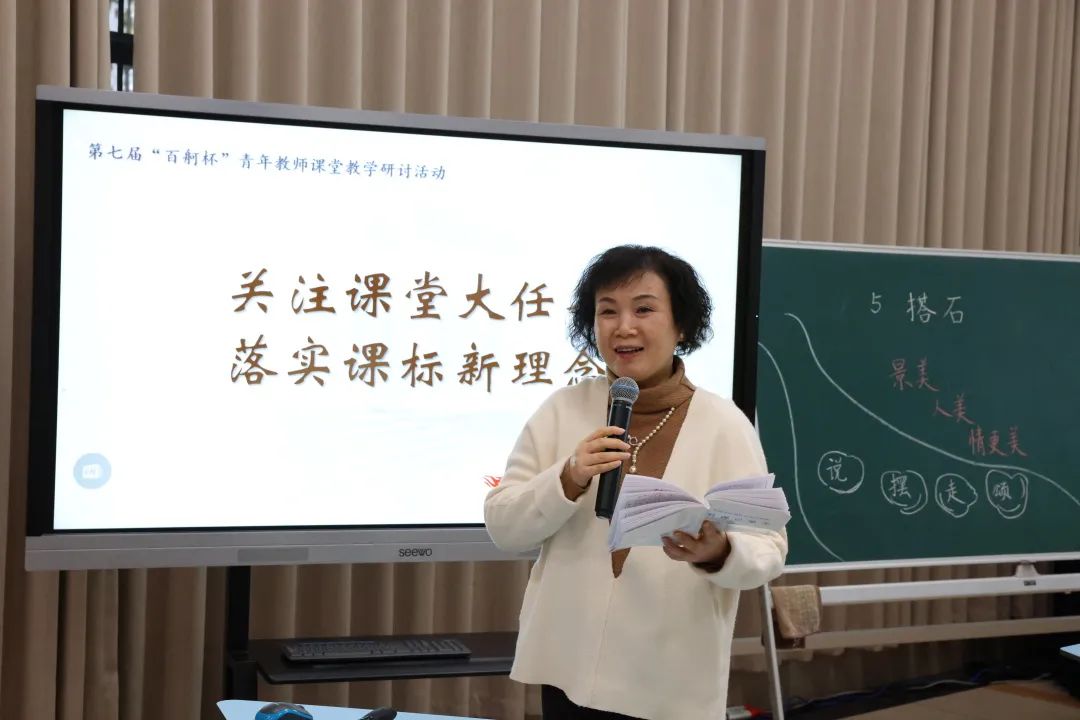 彭昕老师也对六堂展示课逐一进行了细致的点评,对六位执教老师的专业素养给予了很高的评价。她认为六堂课各有各的风采,各有各的特色,真正做到了“各美其美,美美与共”。与此同时,彭老师对我校教师全面落实新课标理念、准确把握语文学科教学改革新动向的积极态度与扎实行动给予了高度赞扬。