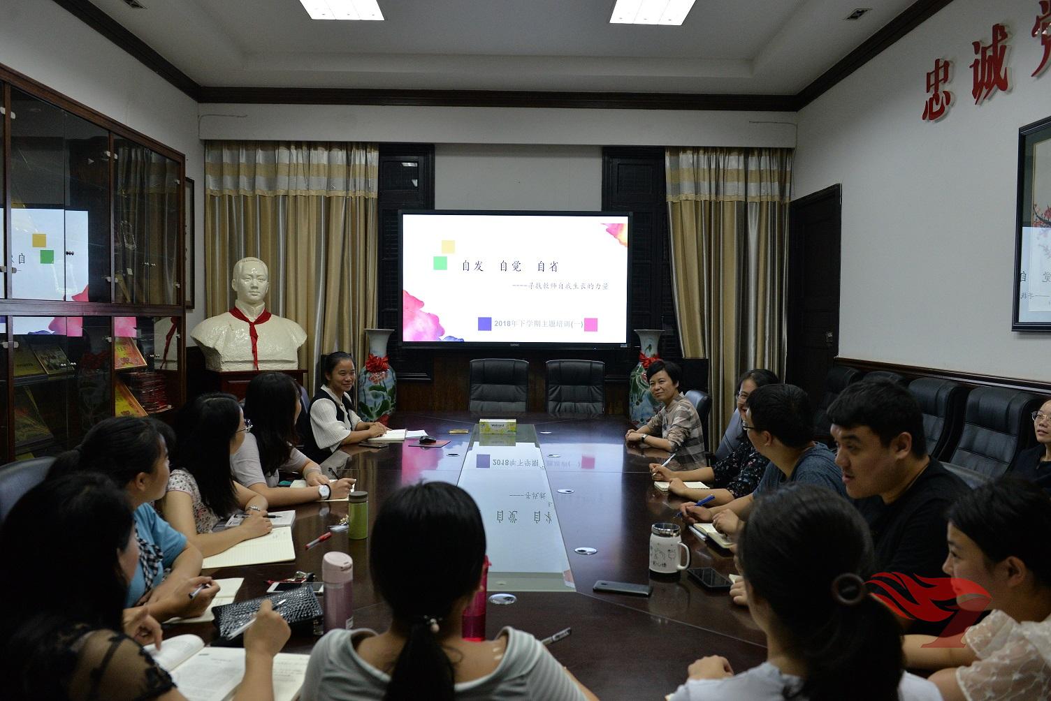 9月13日晚,在教研室主任戴老师的主持下,本学期青蓝教师成长团队第一次主题培训在小会议室如期举行。本次培训以《自发 自觉 自省——寻找教师自我生长的力量》为主题,着力提升青蓝教师的课程意识,并以课程意识引领专业发展。