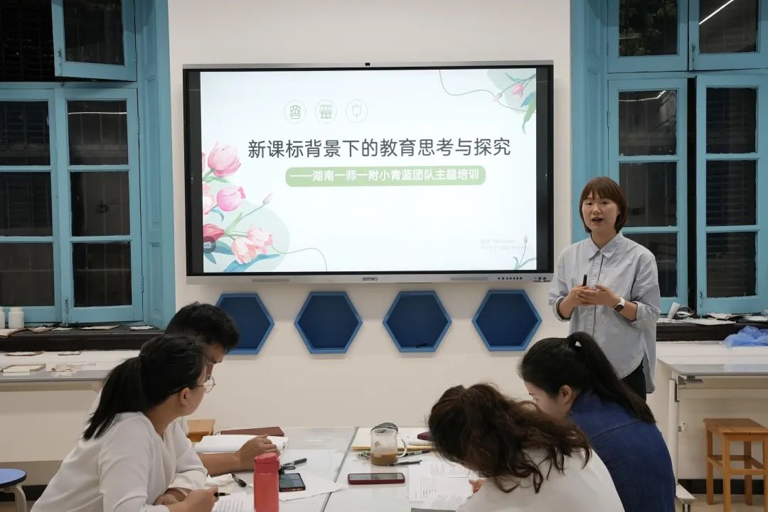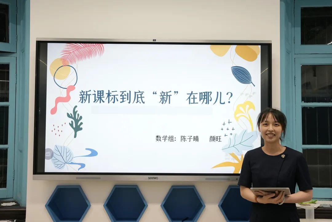 首先,团队负责人刘思瑾老师进行了题为《新课标背景下教师的思考与探究》的主题分享。她引导大家从宏观上思考共性,寻求学科融合的突破口,鼓励年轻教师立足课堂,在实践中研读课标。接下来,各学科教师代表上台分享学习小组的研究成果。