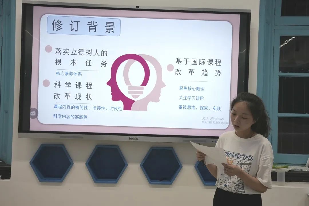 科学组杨艳林老师从此次参加天心区“创新杯”科学学科竞赛课经历说起,从修订背景、主要变化、课程变化三大方面谈了自己对新课标的理解。从课程目标和课程设计两大板块讲述了新课标更注重综合性、实践性以及突出育人导向。