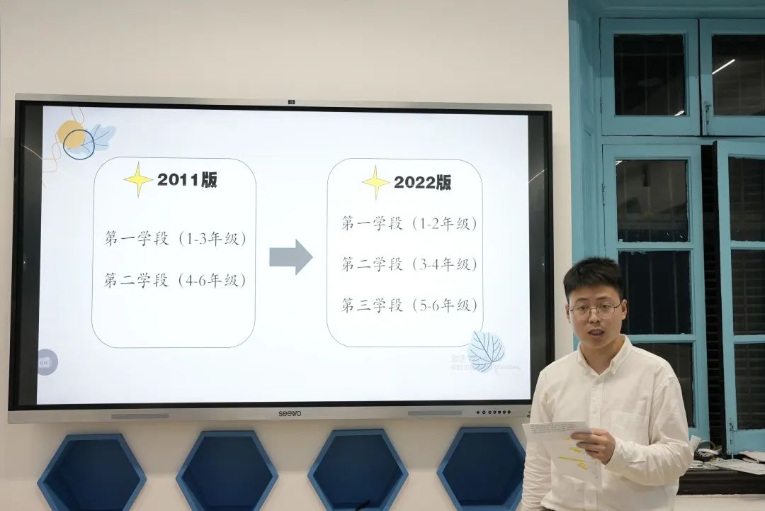 语文组向曦作为语文学科代表带来的分享落脚于新课标与2011版课标的区别,讲述了对新课程标准中出现的诸多“能”字的思考,强调“能”字指向的语文学科能力、学生学习能力、教师教学能力的共同提升。