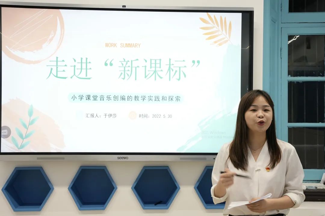 音乐组于伊莎老师从艺术课程标准中汲取营养,结合自身教学经验,讲述是如何将“创编活动”带入音乐课堂,并且让学生自主创编歌词与曲谱结合,进而落实“创造美”这一新的课程目标。