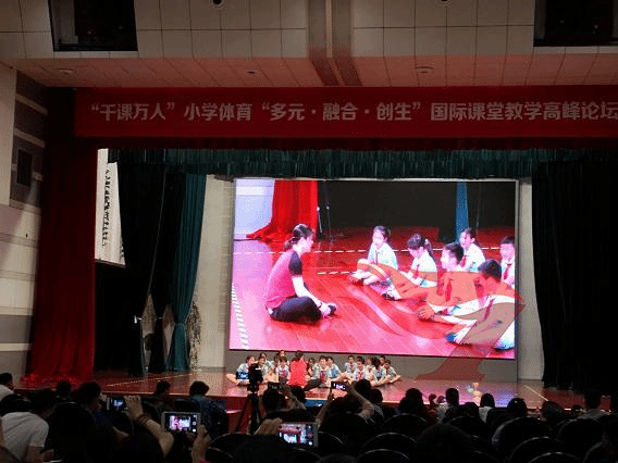 这次“千课万人”小学体育主题“多元.融合.创生国际课堂教学高峰论坛”是采用小场地、高效能的教学主张,在有限的场地空间里,通过多方位,多角度,有深度、有趣味的教学设计,进一步解决学校场地、器材、活动参与度、运动负荷之间的矛盾。