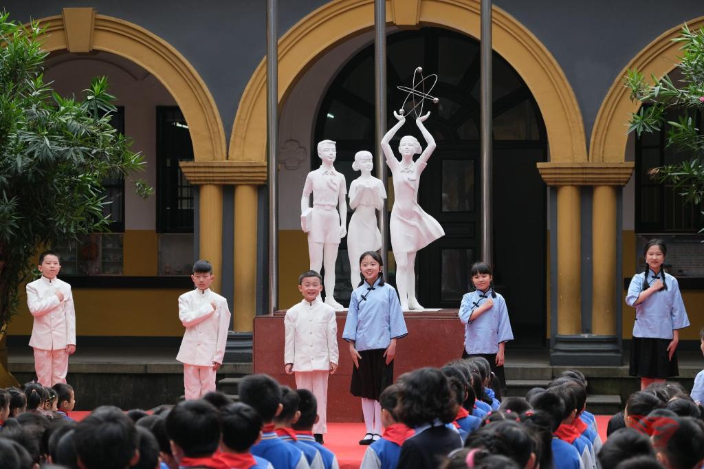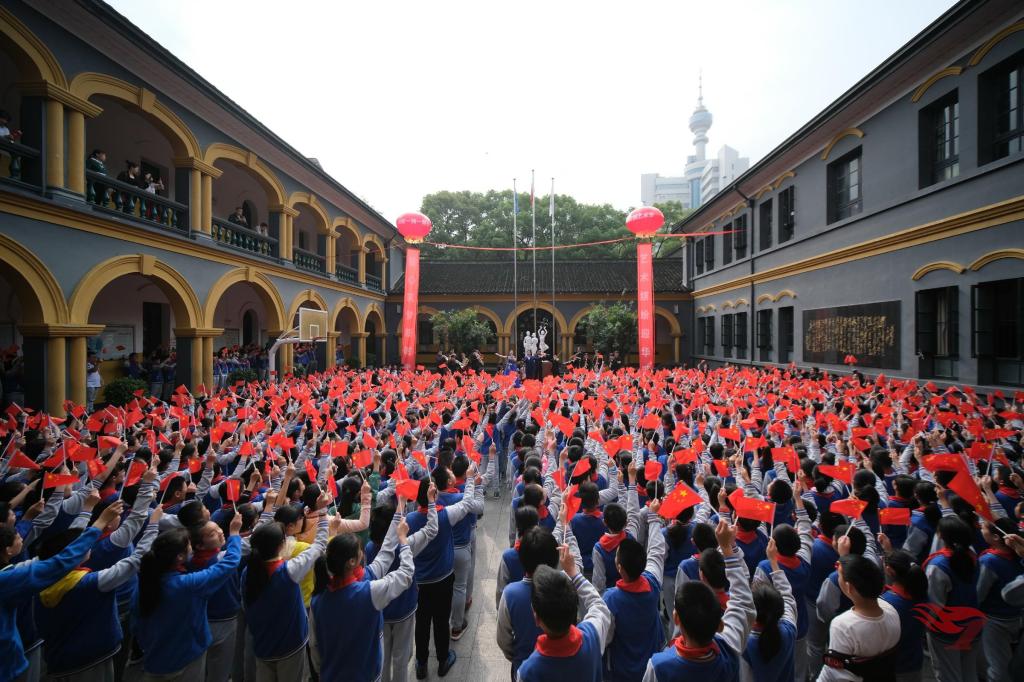 70年星移物转,70年岁月如歌。祖国是我们童年的一支歌,更是我们心中的一抹光。每一代人的童年里都有一首歌,穿越时光、跨越长河,开幕式的第一篇章就在爷爷奶奶、校长妈妈、老师们还有同学们童年的歌声中开启。从《共产儿童团团歌》到《让我们荡起双桨》,从《我爱北京天安门》到《童年在长大》,我们用歌声回忆童年,用歌声致敬新中国,用歌声唱响新时代。