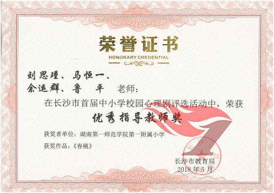 我校校园心理剧《春桃》在历经片赛、区赛的夺魁后,再次获得长沙市一等奖。学校德育主任鲁平、心理健康教育教师刘思瑾作为代表前往领奖。