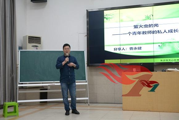 本次培训,我校还有幸请到了天心区青园中信小学的语文老师曹永健,一位非常教师。初见曹老师,清风拂面,帅气儒雅,由内而外散发的一种亲和力,而他的故事,都与阅读有关。曹老师以《萤火虫的光——个青年教师的私人成长档案》为主题向老师们分享了他的阅读成长历程。