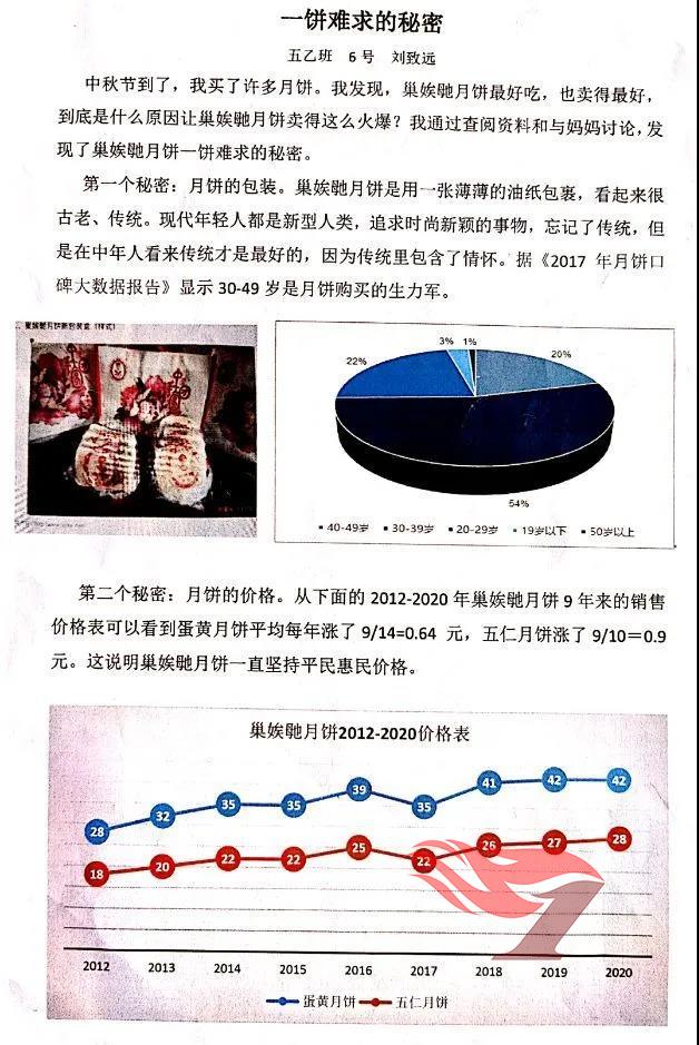 月饼是中秋的传统符号和象征,更承载着几千来中国人对团圆的美好希冀。因此对月饼的研究成为了许多同学共同的兴趣。“月饼最开始是什么样的,它可以有其他形状吗?”“什么口味的月饼最受欢迎呢,卖不完的去哪呢?”“月饼是怎么制作的?”……一个个问题激起了同学们的好奇心、探究欲:亲手制作,从原材料选取采购,到成品打磨,点点滴滴逐一体验;走访调查,从团队组建、问卷设计,到参观采访,撰文编稿,校园小记者成为街头一景;寻文探秘,从熟悉搜索引擎、查阅书籍报刊到整合资料,形成成果,每一步都受益匪浅……