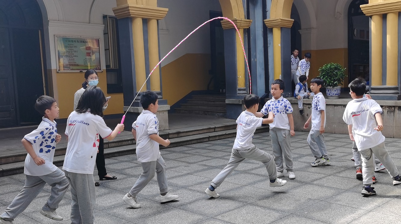 值得一提的是,初次接触集体长绳项目的中年级学生,训练的积极性可高了,操场上、走廊里、教室前……校园内随处可见他们跳动的身影,他们会因为一名同学克服了进绳的障碍而集体鼓掌,更会因为成绩提高了几个而欢呼雀跃,期待他们在6月份的3分钟集体跳长绳比赛中获得佳绩。