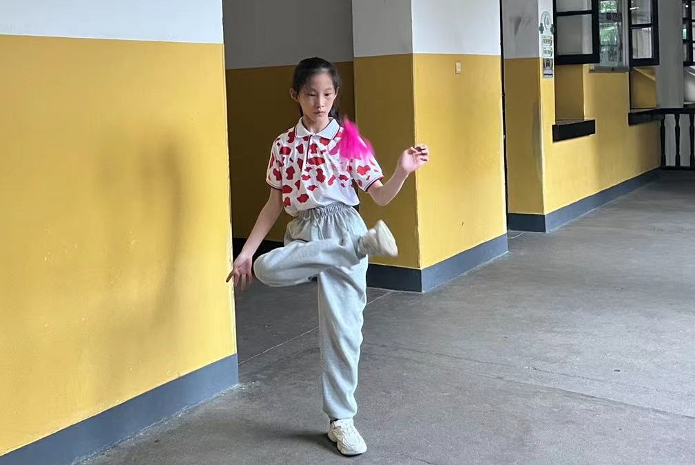 短绳在孩子们的手中越转越快,宛如一道道彩色光环;毽子在孩子们的脚上忽上忽下,犹如一个个跳跃音符。全员参与的一分钟跳短绳和踢毽子比赛,更让学生提升了为班级争得荣誉的责任感和使命感,大家铆足劲,小小的人儿都想为集体贡献自己大大的力量。