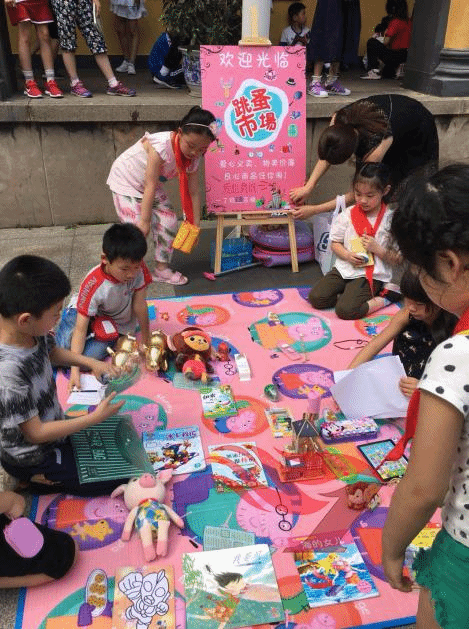 2019年6月5号,在第三届思维拓展周中,湖南一师一附小一年级展开了一场别具匠心的跳蚤市场活动。由数学老师们组织,通过前期宣传,同学们都事先准备了三到五件的课外书、文具、玩具、生活用品或自己手工制作的小工艺。物品在精不在多,孩子们提前与家人商量好价格,有的还贴好了标签。
