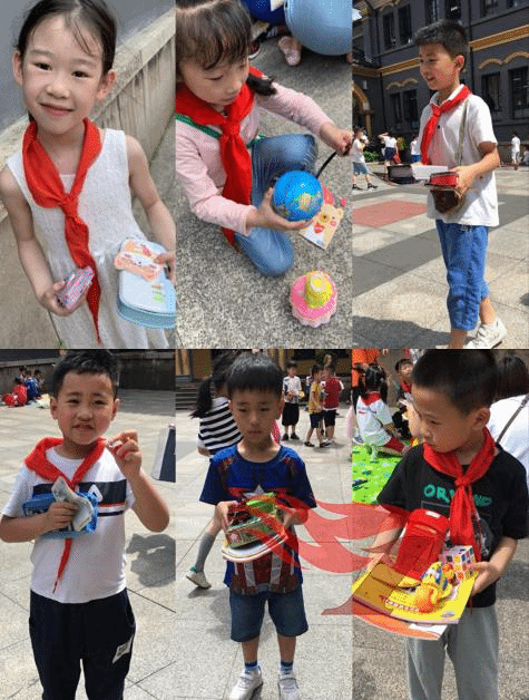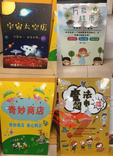 活动分为两部分。前一部分是由甲丙两班同学摆摊,乙丁班同学进行购买;第二部分则是乙丁班同学卖,甲丙班同学买。提前让同学们准备不到五十块钱的人民币。一角,五角,一元,五元,十元,二十元不等。一方面是为了便于买卖找零钱,另一方面则是很好的教会同学们如何去花钱,体会自己买东西的乐趣。孩子们都比较兴奋,认识了人民币,这和以往跟随爸爸妈妈去超市不同,花钱的主动权掌握在自己手里。在这个跳蚤市场里,花样真奇妙。我们把同学们按人数分为几个小组,每组摊铺前都有一块摆放物品的桌布和一个写有店名的宣传牌。花花绿绿的宣传海报和童真可爱的广告词,让在场大人忍俊不禁。老师们还提前对孩子进行全面的安全、礼貌语、购买常规等方面的培训,买卖交易情景熏陶(如:交易语言、吆喝、讨价还价等),有的孩子还会主动推销。买一送一,虽然还不太明白折扣是什么意思,但他们会讨价还价的去购买自己心仪的物品,面对别人的讨价还价时会友好的出让,享受销售的达成带给他们的乐趣,一个个小大人有模有样。