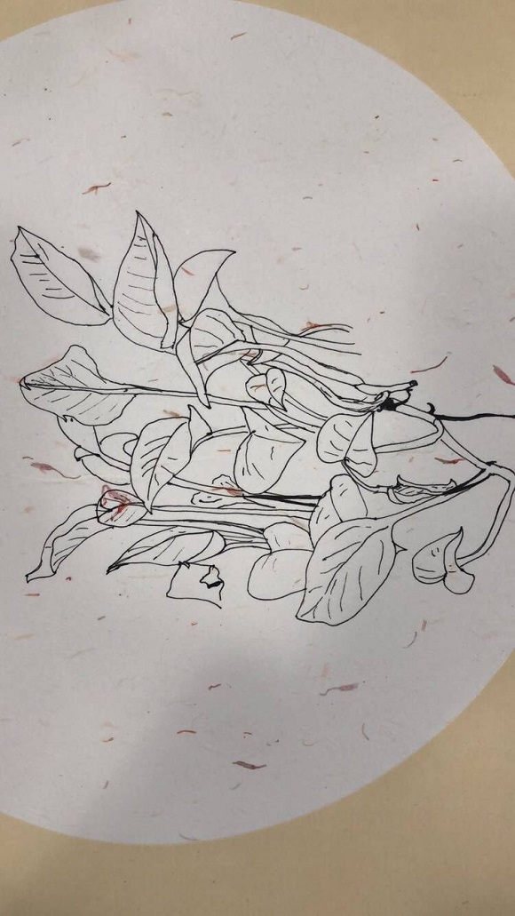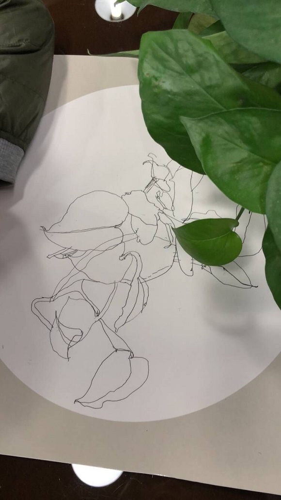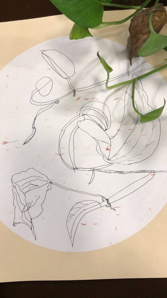 与其说写生,不如说是看景画心像,随着叶片轮廓的起伏,画自己的感受。