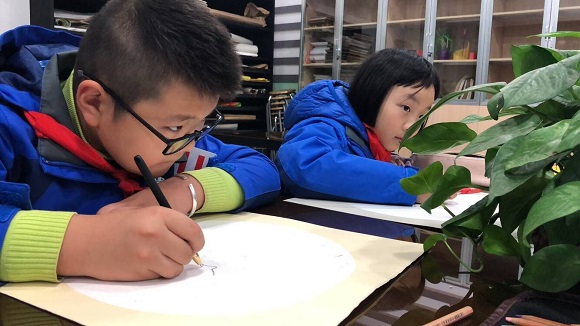 其实在这样的写生教学中,对造型有要求,对构图有要求,我只是要求孩子边看边画,慢慢来。对用笔也只要求孩子用流畅的线条去摹写,去体会用线,去体会颜色。
