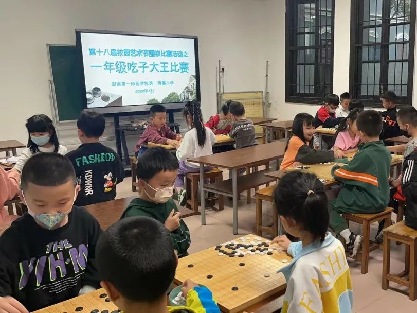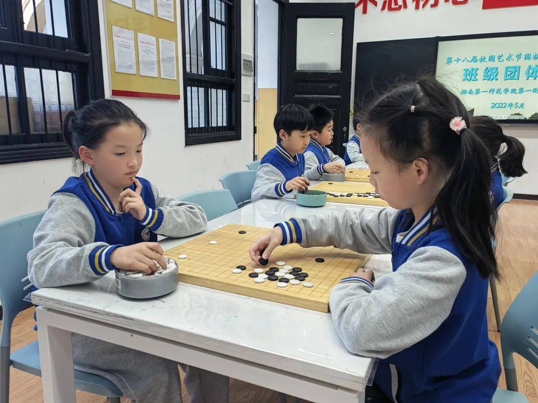 为了进一步贯彻实施国家“双减”政策,丰富学校课余文化体育生活,提高学生综合素质,促进同学之间的友好交流,我校长期坚持开展围棋教学活动与竞赛交流活动。初夏五月,伴随着第十八届校园艺术节的隆重开幕,湖南青少年棋院一附小分院围棋系列竞赛活动如约而至,吸引了近200名校园小棋手踊跃参与,共同角逐围棋“吃子大王”和班级围棋团体比赛的桂冠。