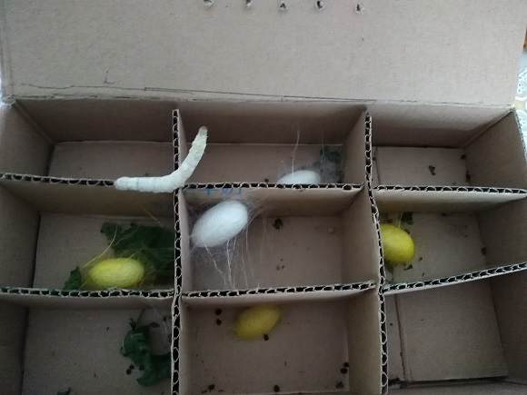 四月初,我校三年级养蚕实践活动轰轰烈烈地开展起来。在一个多月的活动中,学生们亲历了蚕的完整生命周期,从蚕卵到蚁蚕,学生们精心喂养,定时清洁蚕房,及时更换新鲜桑叶。蚕宝宝一天天长大,经历了四眠五龄后吐丝结茧,羽化成蚕蛾,交尾后产卵。