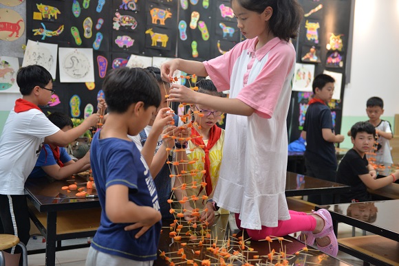 一根胡萝卜能玩出什么花样?两张A4纸到底能搭多高?附小的孩子们用一个个作品挑战材料与结构的稳定性,小组合作分工明确,制作过程专注认真,孩子们在活动中学习,在活动中成长,朝着更高、更稳、更好的目标努力。