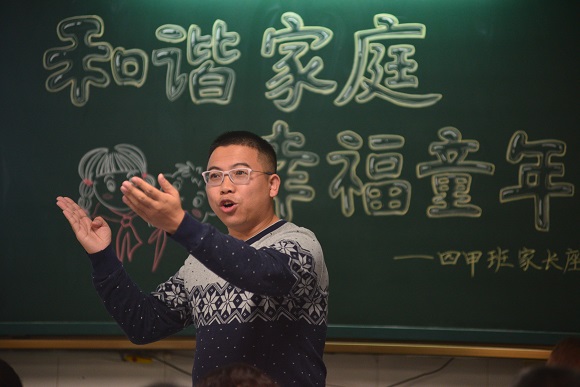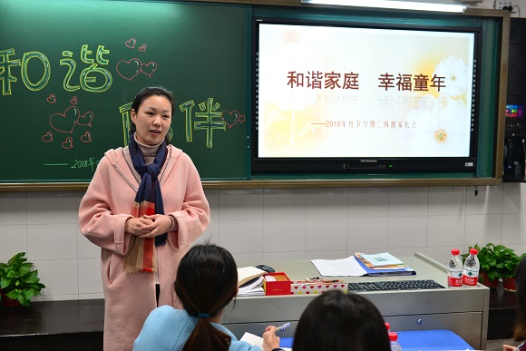 教室外的冬雨丝丝飞落,教室内的共话和谐真情传递。在2018年11月14日寒意浓浓却温情洋溢的夜晚,学校组织全校家长共聚校园,组织召开了“和谐家庭·幸福童年”主题家长会。