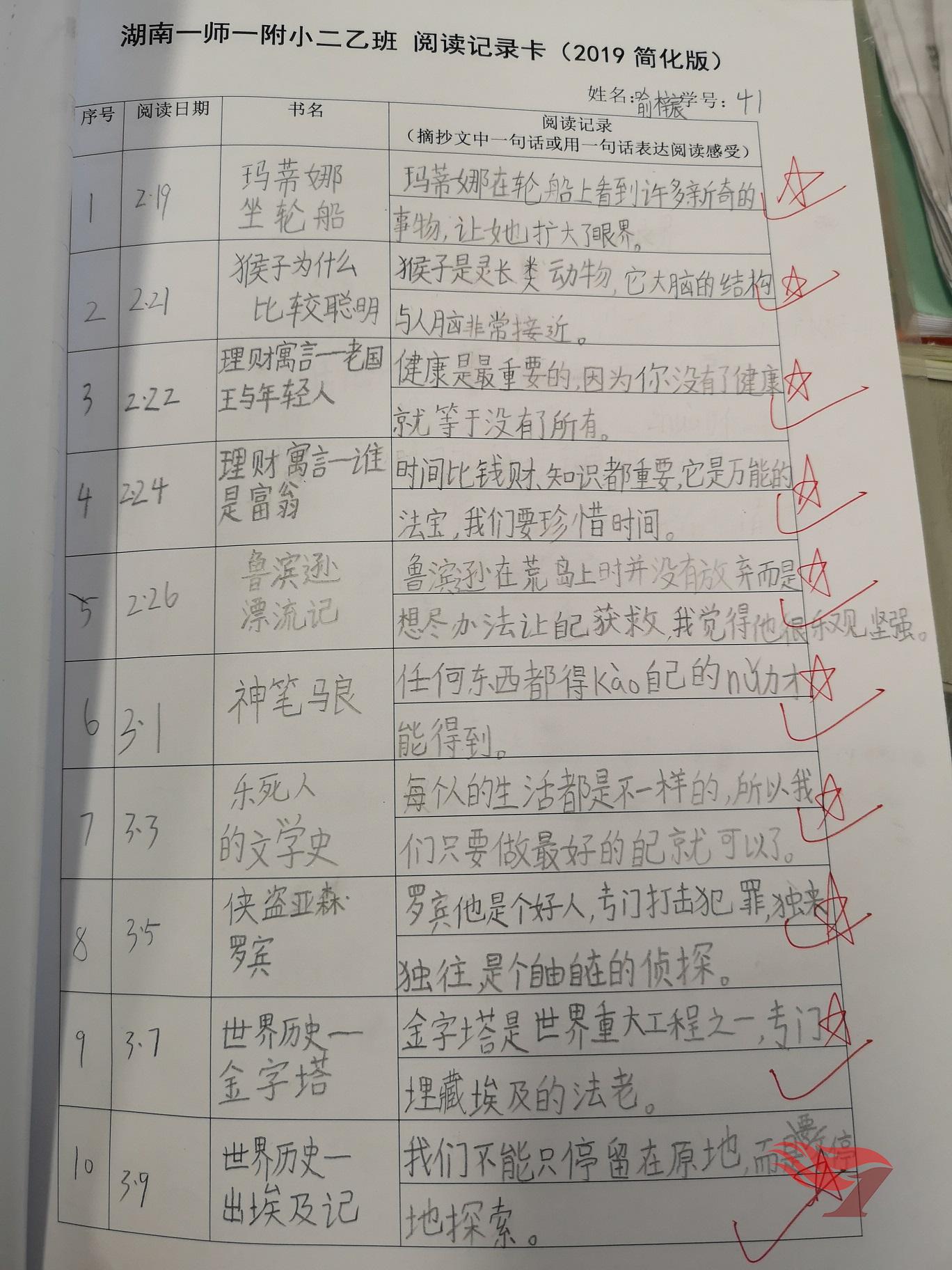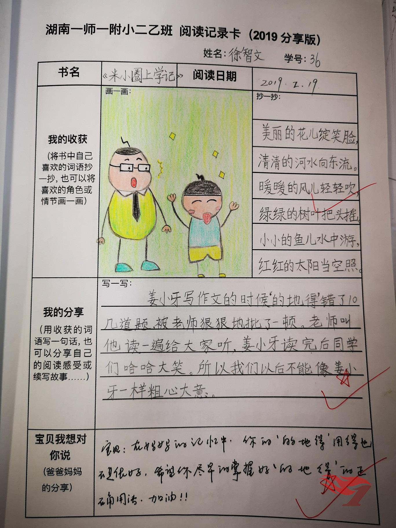下学期,马上进入中年级了,相信学生在阅读记录的方式中找到了乐趣收获了成长的同学,也会更乐于将这样的方式一直坚持下去。阅读有了交流互动的机会,既能密切亲子关系,也能在更远的未来,让他们受益终身。