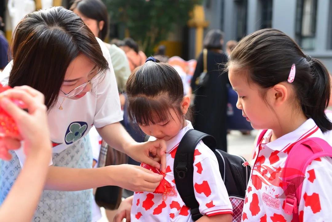 听!“当我背上书包出发,第一次离开家,不做妈妈的小尾巴,我学着长大……”熟悉的旋律响起,一年级小朋友们身着新校服,迎着晨曦,映着笑脸,走进校园,古朴的四合院顿时热闹起来!