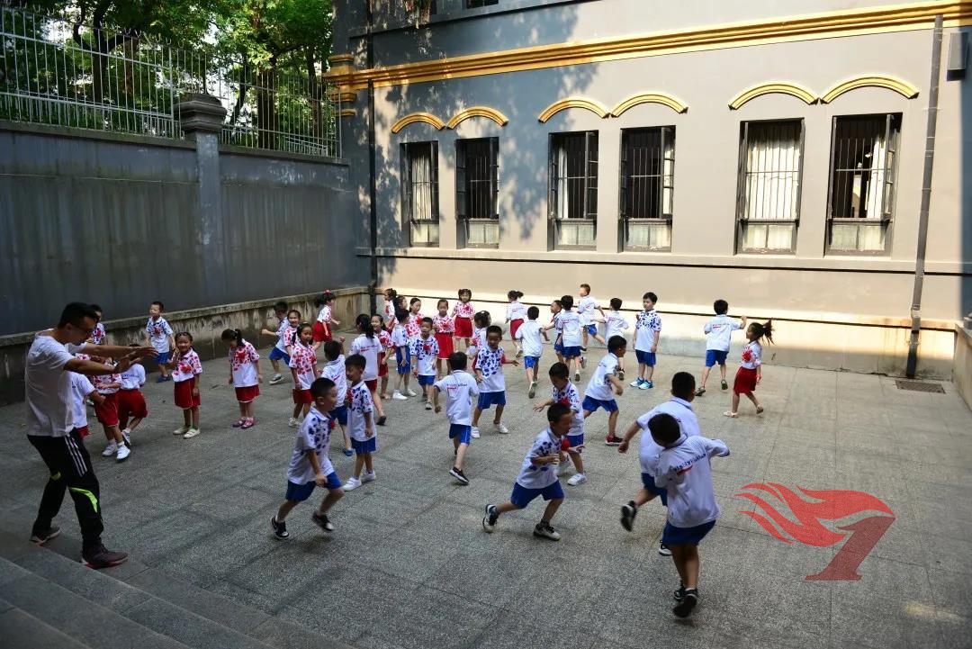 集合了!体育老师来了。他们正带着孩子们通过游戏练习队列呢!玩得不亦乐乎的小家伙们已经牢牢记住了自己的位置。大操场上的升旗仪式教育,让小朋友们满心期待那隆重而有意义的时刻早早到来。