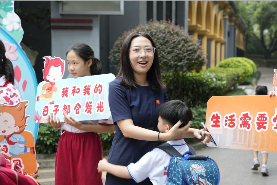 9月27日早晨,学校的少先队礼仪队员、行政及教师代表以及附小吉祥物峥峥嵘嵘在校门口迎接同学们的到来,在一声声“早上好”的温暖问候中,互相张开双臂紧紧相拥,留下了一幕幕感人、温馨的画面。